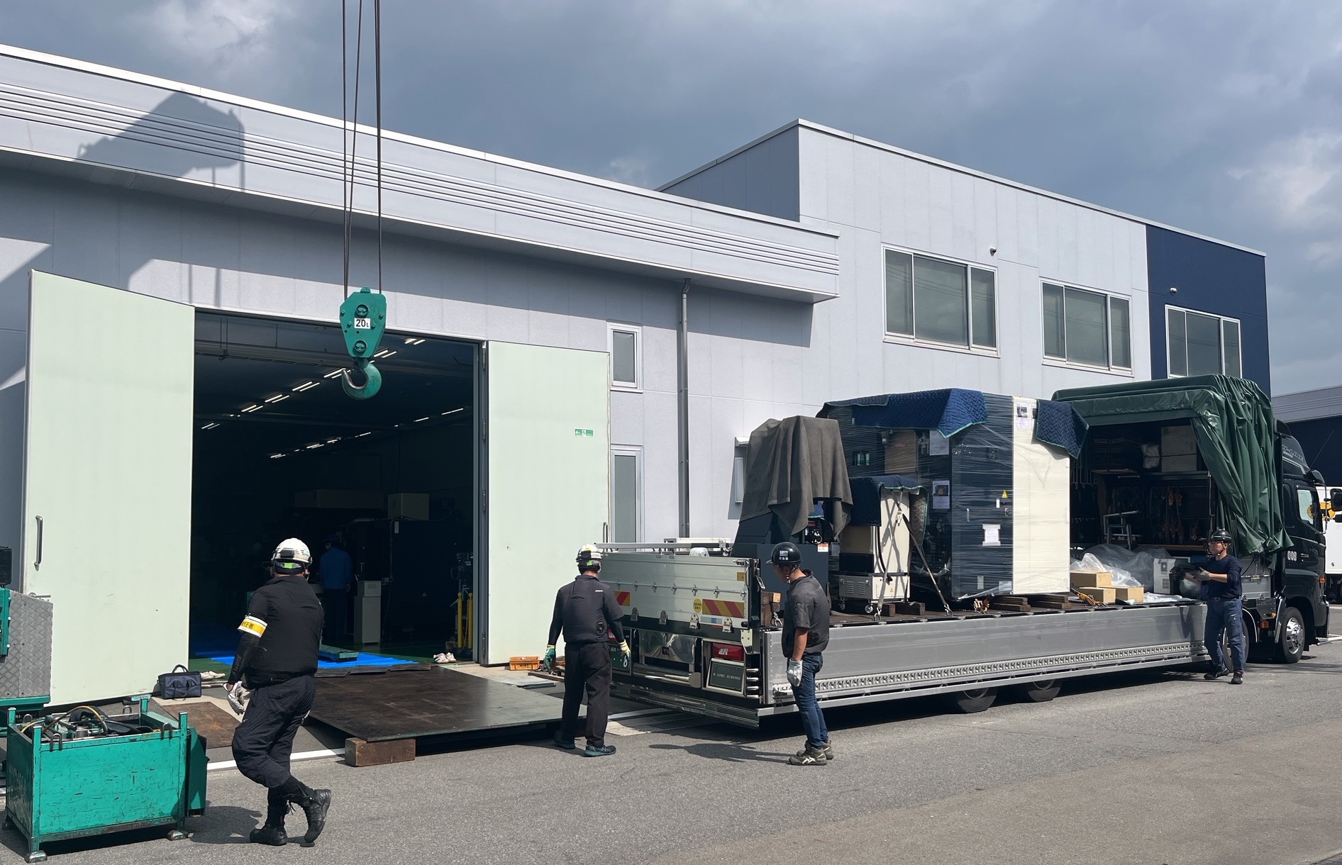 以下写真はマシニングセンタとワークチェンジャー搬入の様子です。