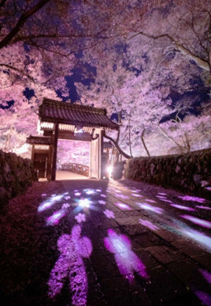 また、夜にはライトアップされた夜桜が浮かび上がり、