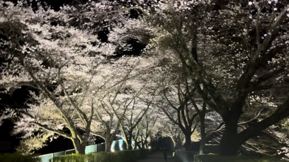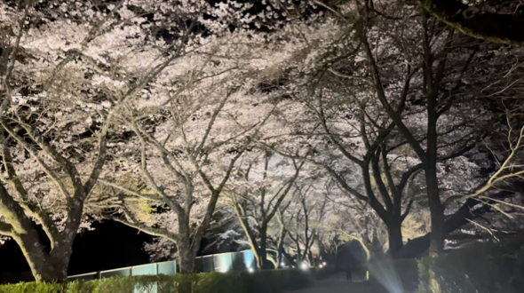 下記写真は4/1時点の夜間のライトアップの様子です。