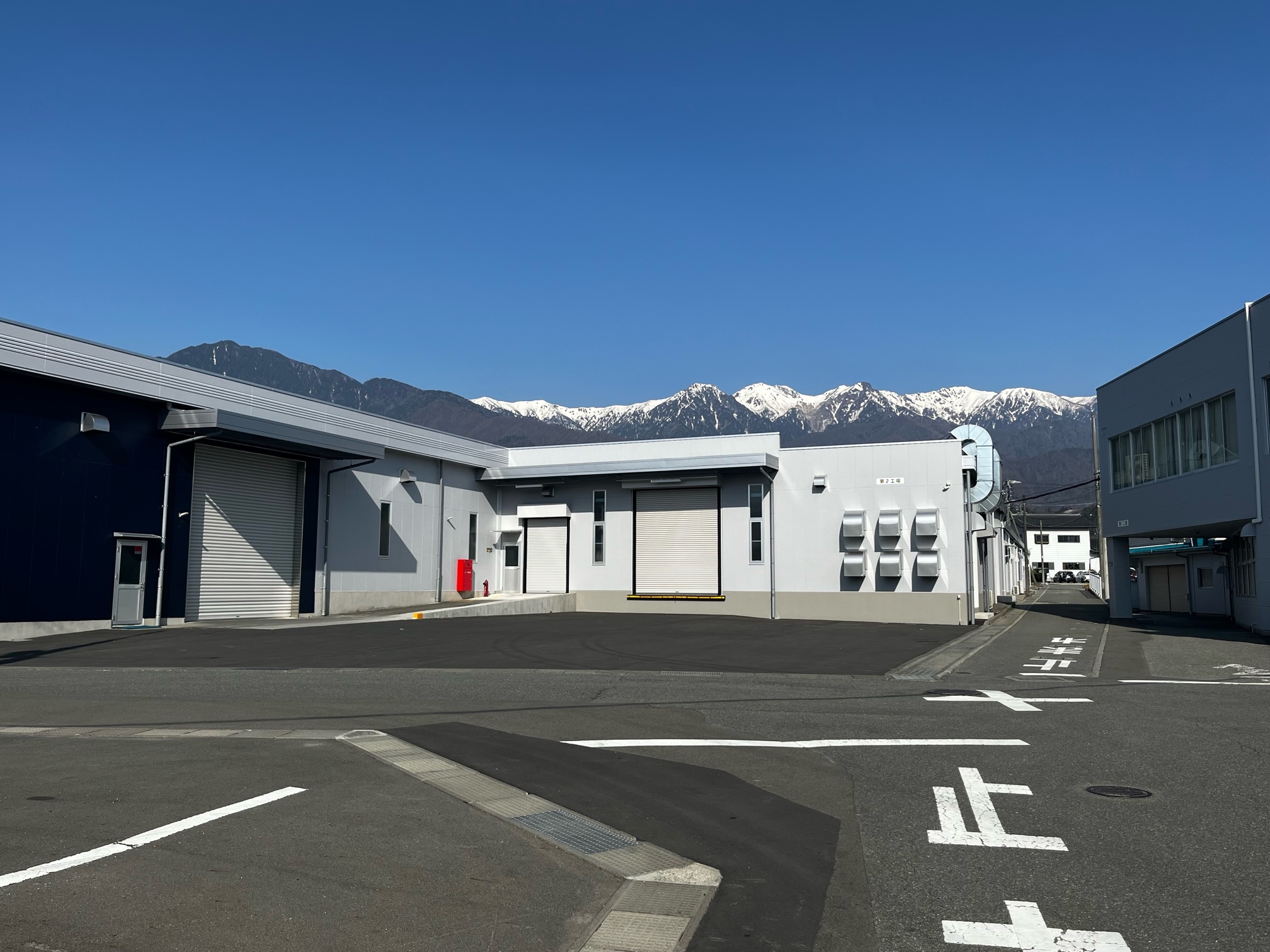 この季節は山の残雪があり会社からの眺めが綺麗です。