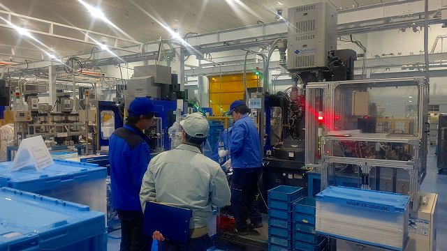 写真はお客様による工場見学の様子です。