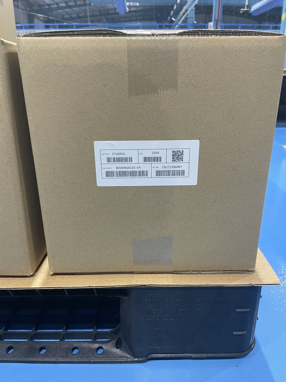 下記写真ように最終生産工程で製品にQRコードのラベルを貼付します。