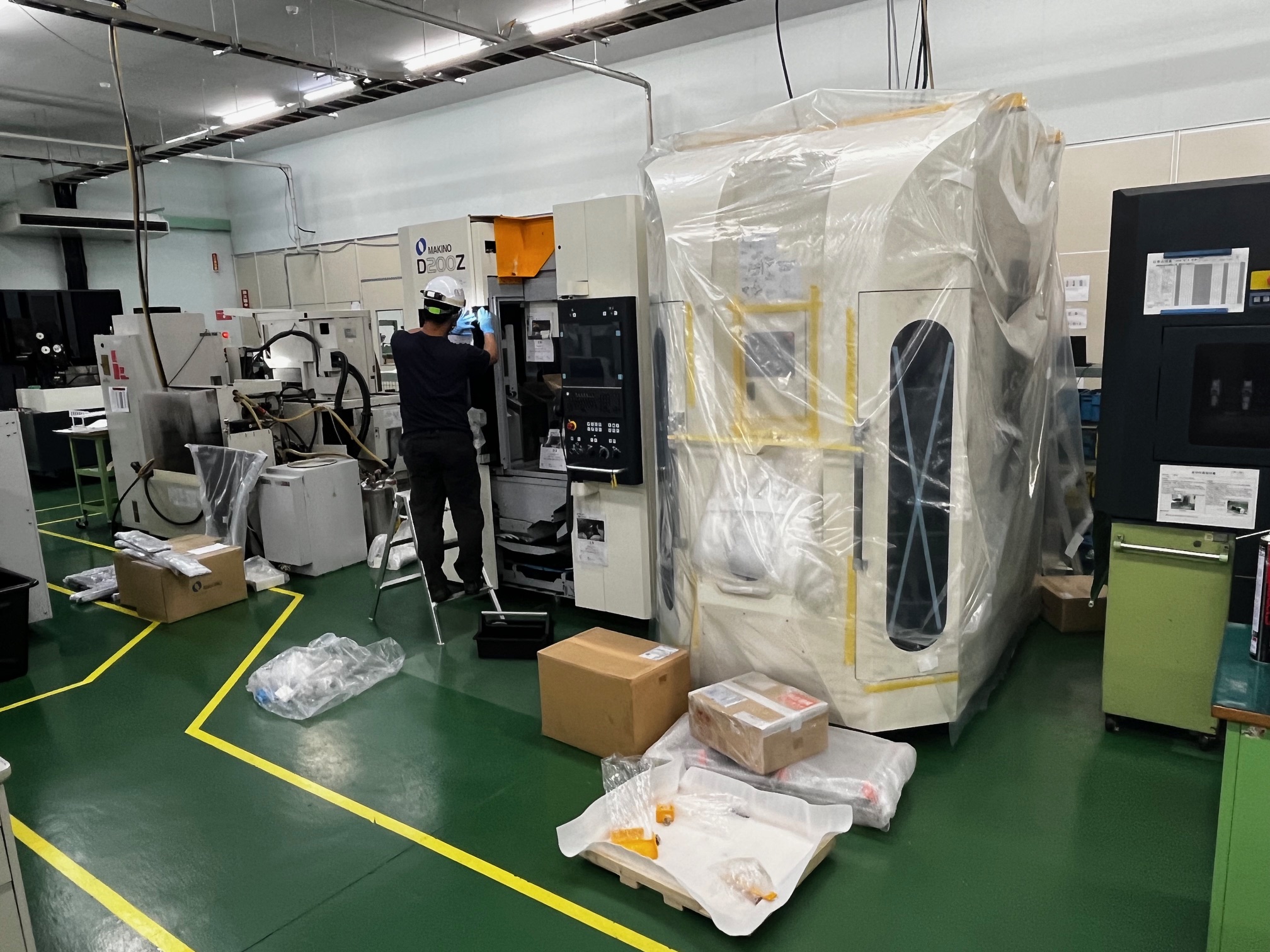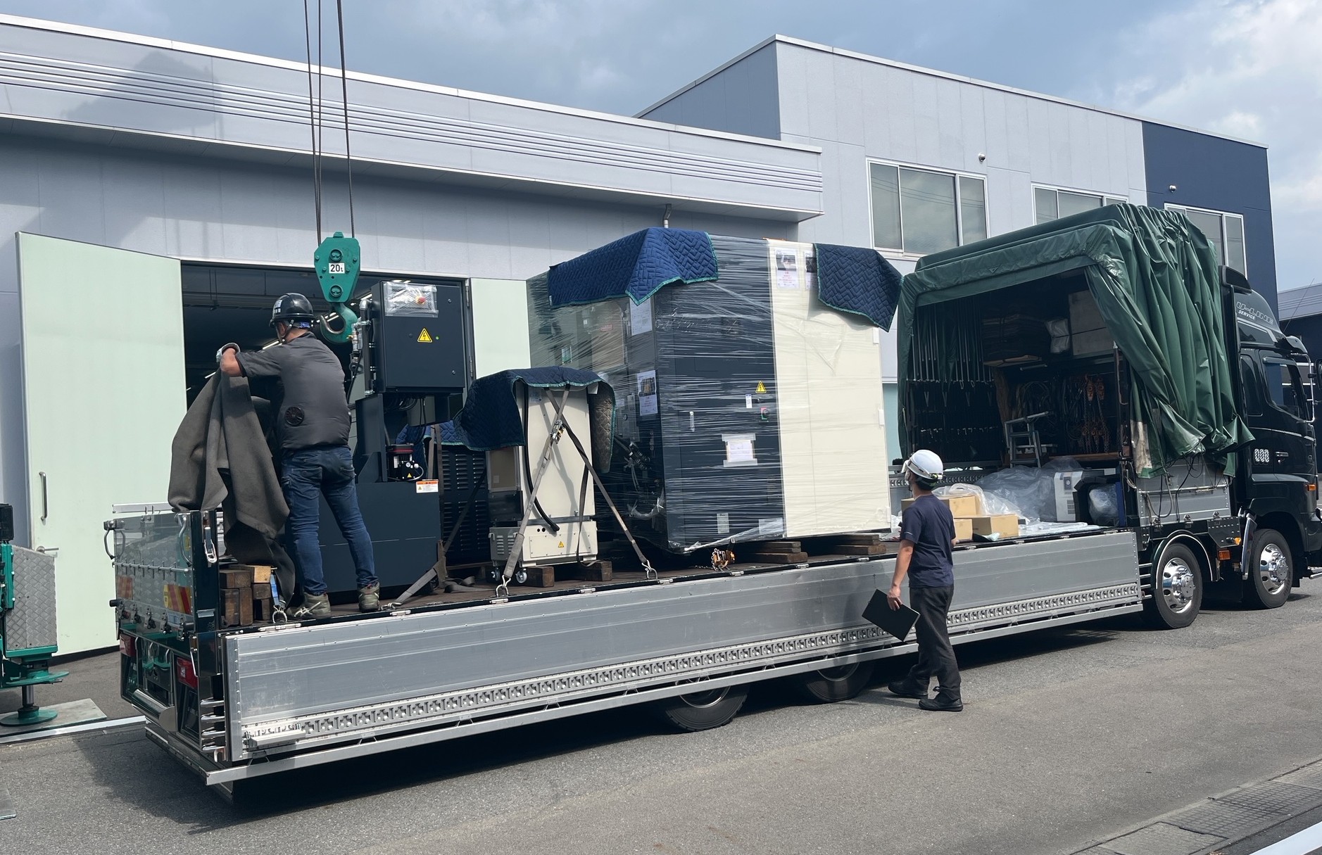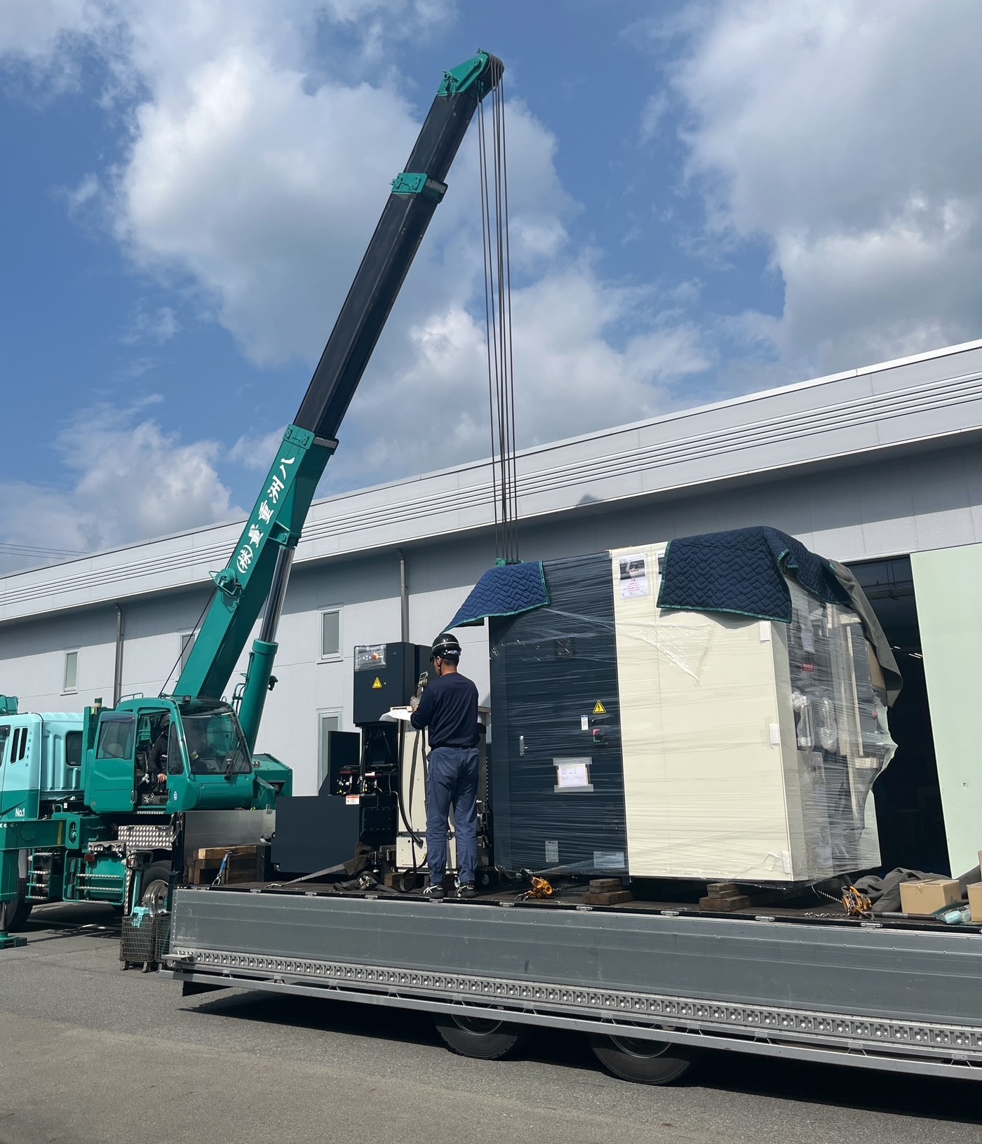 以下写真はマシニングセンタとワークチェンジャー搬入の様子です。