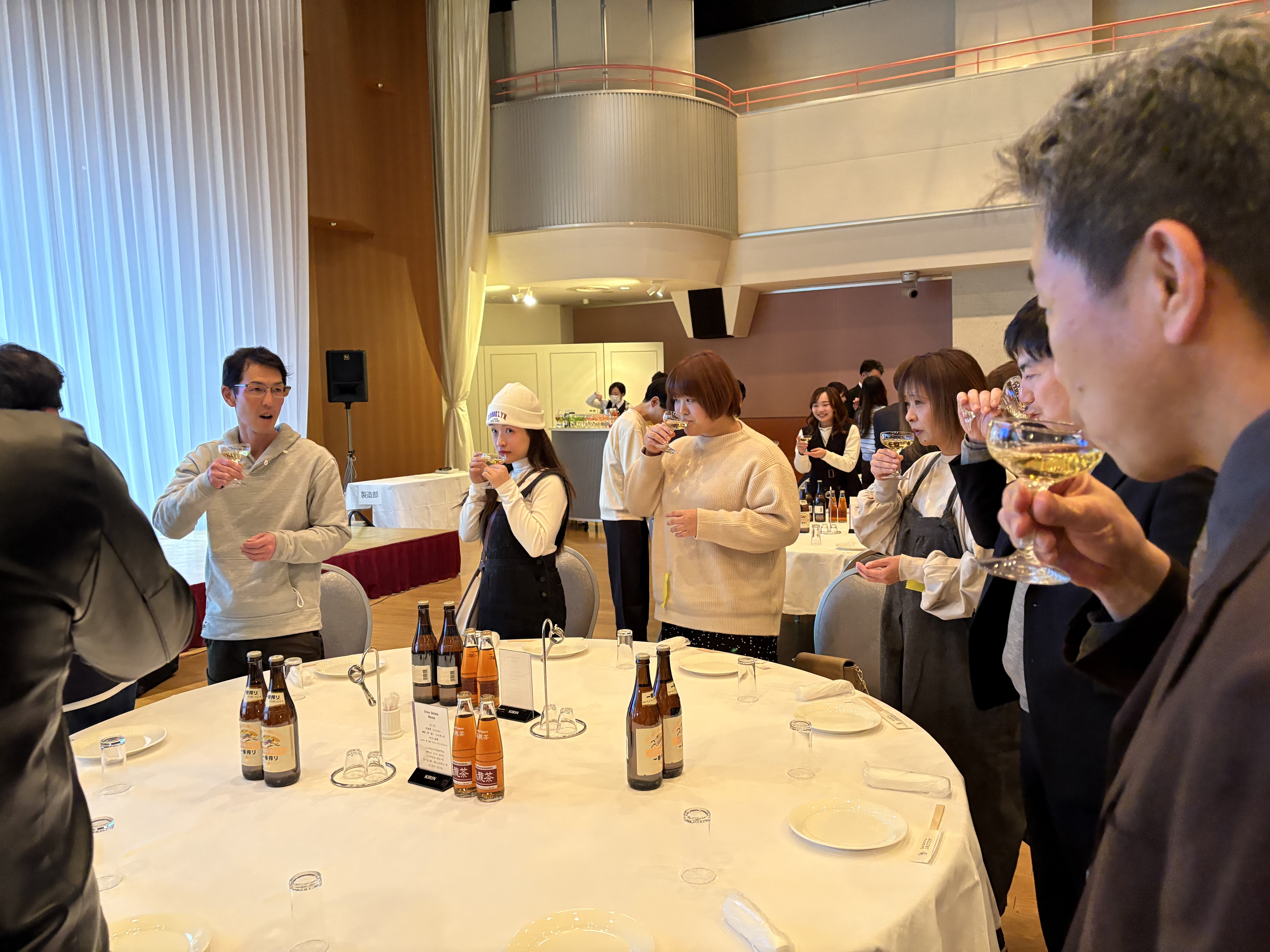 製造部宮下次長の発声で乾杯っ!まずは美味しいお料理とお酒を堪能します\(^o^)/